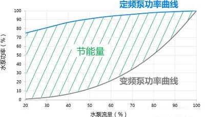 对于长时间在低负荷下运行的循环水泵,请考虑实施水泵变频控制。空调水系统的水泵变频控制技术的基本原理是根据冷(热)负荷的变化来调节水泵的电源频率,从而控制冷却水或冷冻水系统中循环泵的转速和流量,减小轴功率,从而达到节能的目的。水泵变频控制技术的节能量约为170〜660kWh/kW。