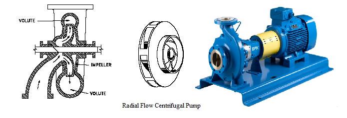 在径向流动泵中,液体进入叶轮的中心,并沿着与泵轴成直角的方向沿叶轮叶片引出。